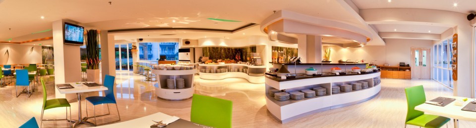 The hotel has 2 separate pools. One pool devoted to children. The other pool is for adults. In the adult pool is equipped with a bar at the edge of the pool. While the children’s pool is equipped with a playground. So this hotel is very suitable for families 🙂