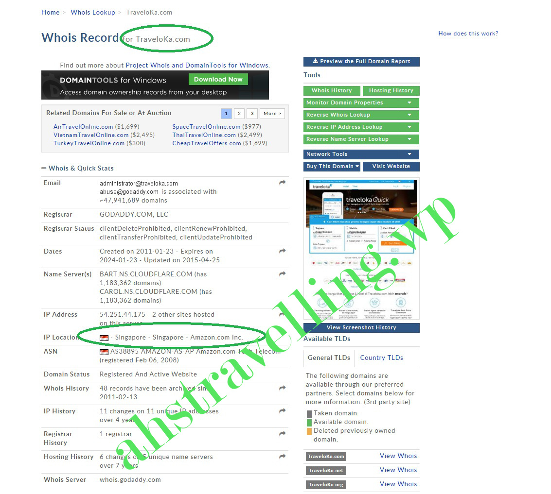 Server Wego ternyata berlokasi di US, sedangkan Traveloka di Singapore.
