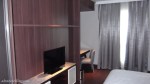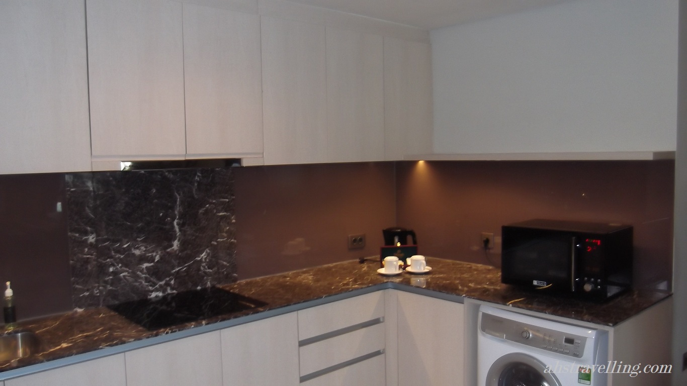 Ruang utama memiliki TV layar lega 42″ samsung, dvd player samsung, IDD telephone. Kemudian di area pantry terlihat begitu lengkap. Almari es 2 pintu samsung, mesin cuci otomatis electrolux, kompor induksi touchscreen, dispenser, microwave, toaster, water heater merk electrolux lengkap dengan printilannya seperti piring sendok garpu pisau dll dst…. bakal bikin anda betah berlama – lama di dalam unit apartemen tersebut š