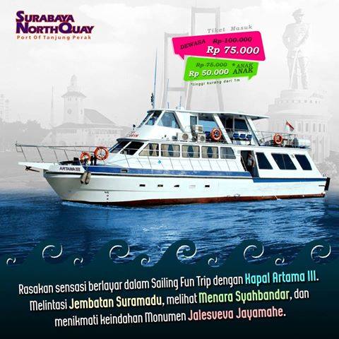 Yang paling menarik adalah ditambahnya wahana baru yaitu mini cruiser ship yang bisa menampung sekitar 30 penumpang. Kapal pesiar mini tsb siap mengantarkan pengunjung berkeliling kawasan pelabuhan tanjung perak tepi laut. š Destinasi nya adalah bawah jembatan suramadu, monumen Jalesveva Jayamahe, dan sekitaran pelabuhan tanjung perak tepi laut. Pengunjung bisa merasakan wahana baru tsb dgn bayar rp. 70.000 utk dewasa, & 50.000 utk anak2.