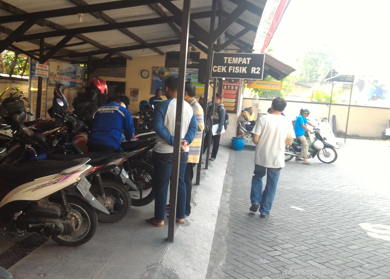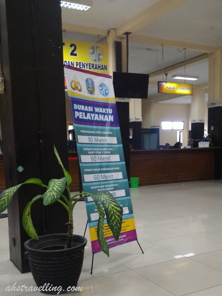 Ternyata memang kondisi saat ini masyarakat sudah begitu paham dengan urusan yang kek beginian. Di lokasi, cuman terlihat 1 2 orang yang rada2 celingak – celinguk kiri kanan kek ahs. Mungkin baru pertama kali ya…. Yang lain dah pada paham alur nya, dari sini kemana terus ngapain lalu bagiamana. Mulai dari yang jepitan sampe yang sepaton, semuanya dah pada ngurus sendiri stnk 5 tahunan ahaha… dasar ahs katrok :P~~
