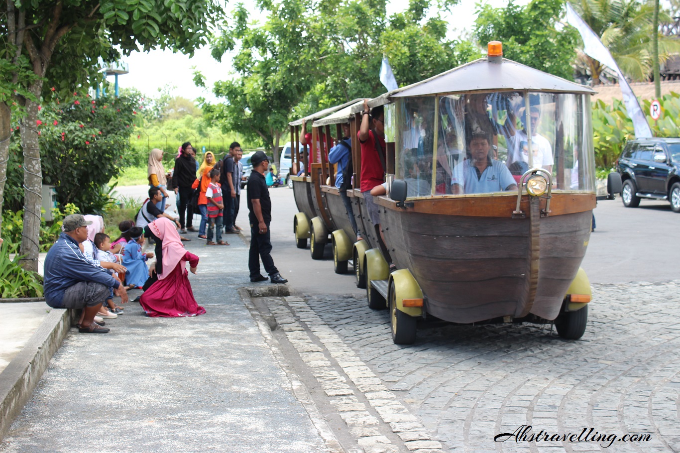 Ke Jogja Bay naik boil, so impresi pertama adalah tempat parkir 🙂 Tempat parkir berada di bag belakang main entrance Jogja Bay. Lumayan jauh sampai2 pengelola menyediakan semacam shuttle untuk mengantar jemput penumpang dari parkiran ke main entrance dan sebaliknya. Gratis. Pertanda begitu luasnya area Jogja Bay? Sepertinya sih begitu. Dan ini unik, layanan shuttle seperti itu tidak ditemui di waterpark lain di Indonesia, cmiiw.